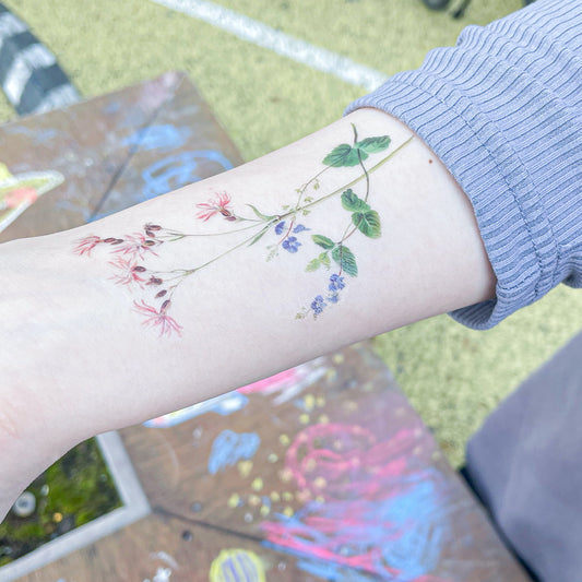 色付き・カラーのデザインのタトゥーシールを集めました。suhadaのタトゥーシールは肌に転写した時の色の劣化が少なく、色数もたくさん。