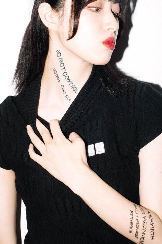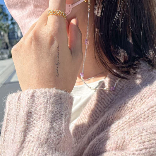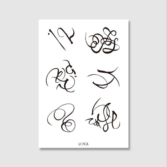 文字・タイポグラフのデザインのタトゥーシール。文字デザインは、胸元や肩などの見える場所のワンポイントにおすすめです。