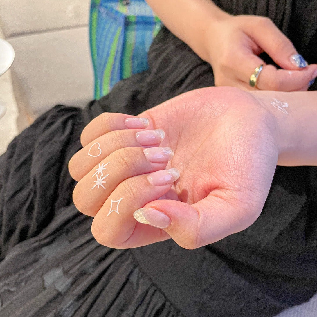『タトゥーシールルックブック』 今回は 指タトゥー編。 指に貼るのにぴったりなタトゥーシールを9item紹介します。 カラータトゥーやブラックタトゥー、文字タトゥーなど様々なのでぜひ参考にしてみてね🌼