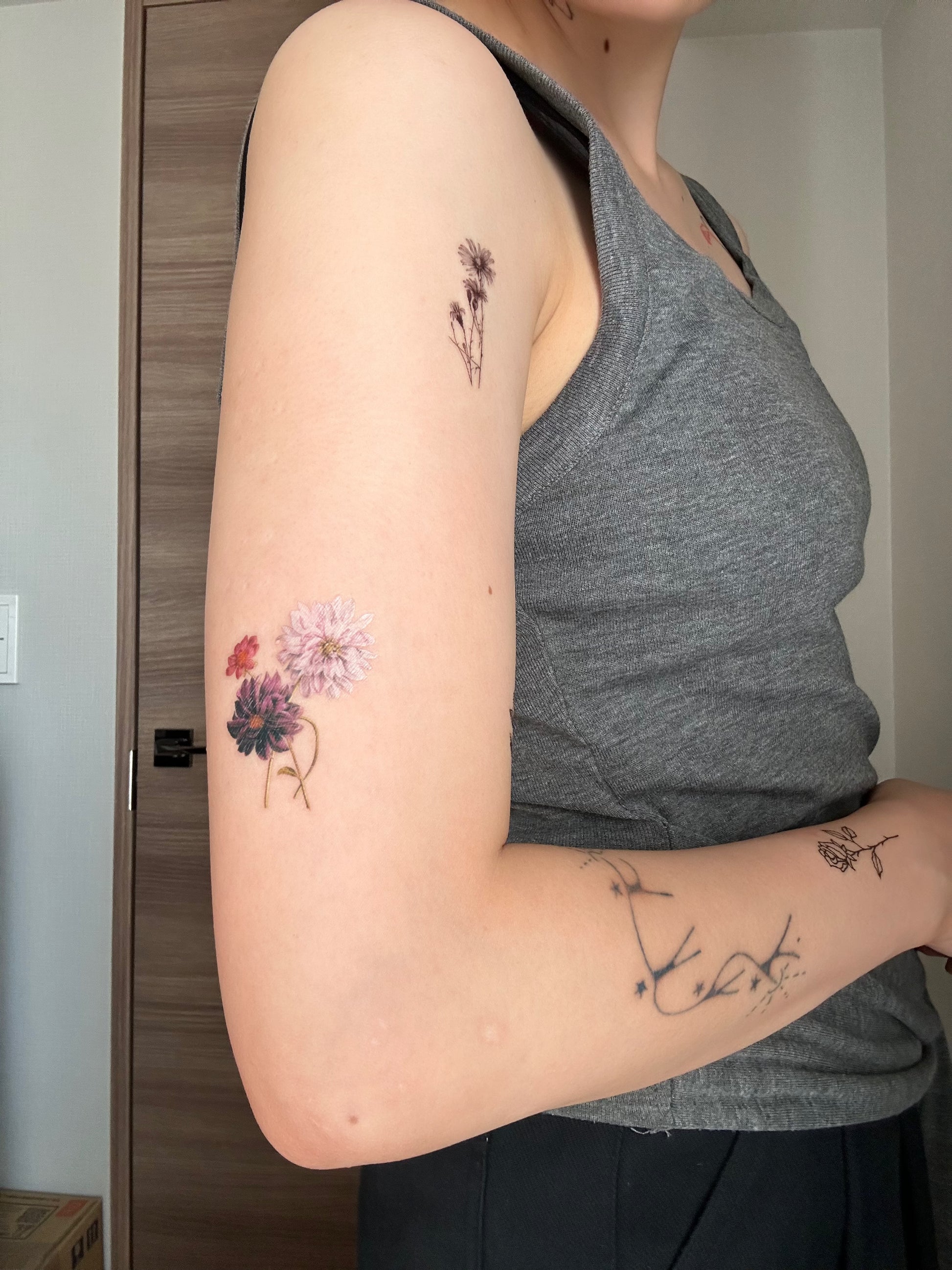 カラータトゥーだけどシックな色合いが大人っぽいです。
